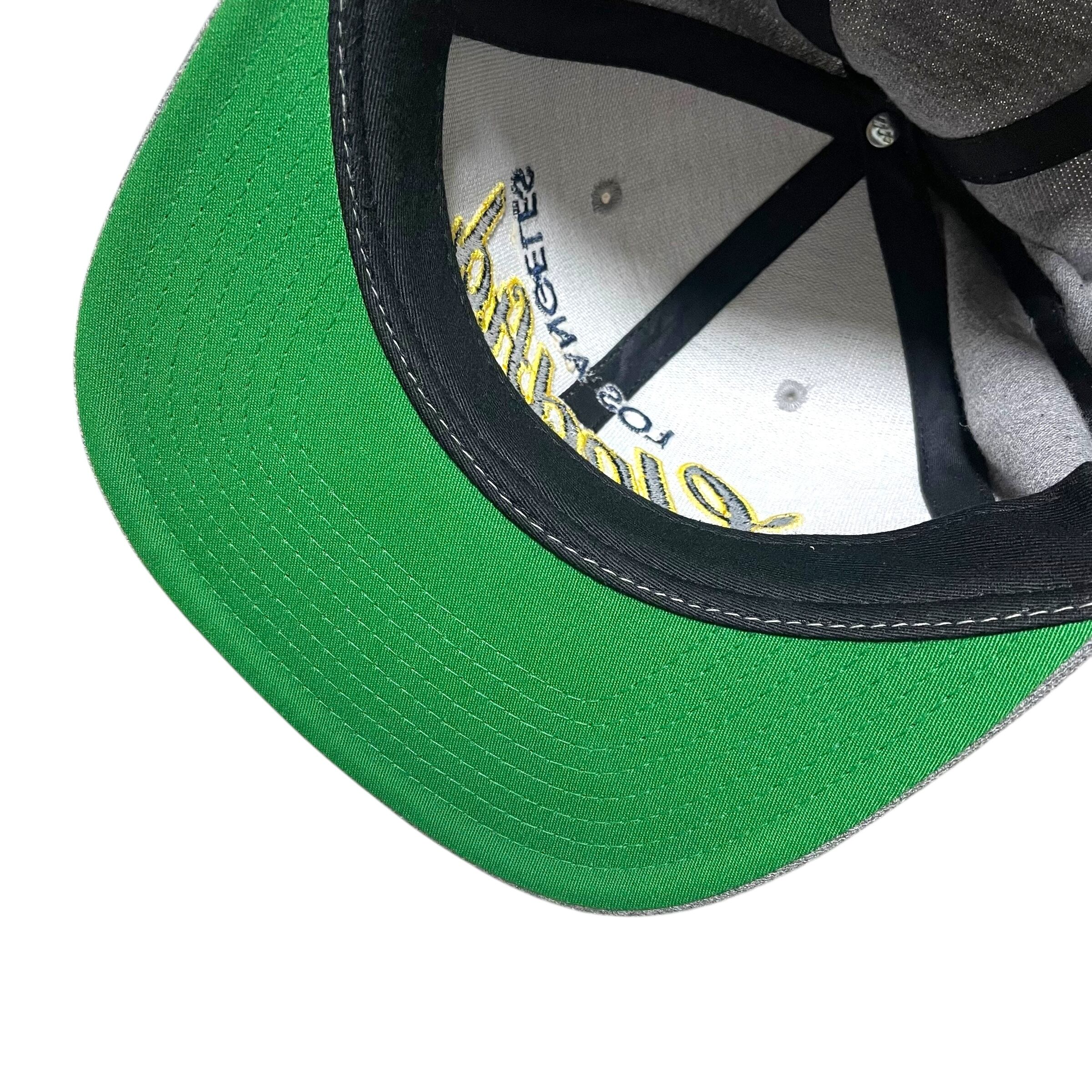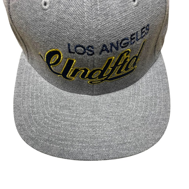 アンディフィーテッドのネームをチームロゴ風にデザインしたスナップバックキャップ。