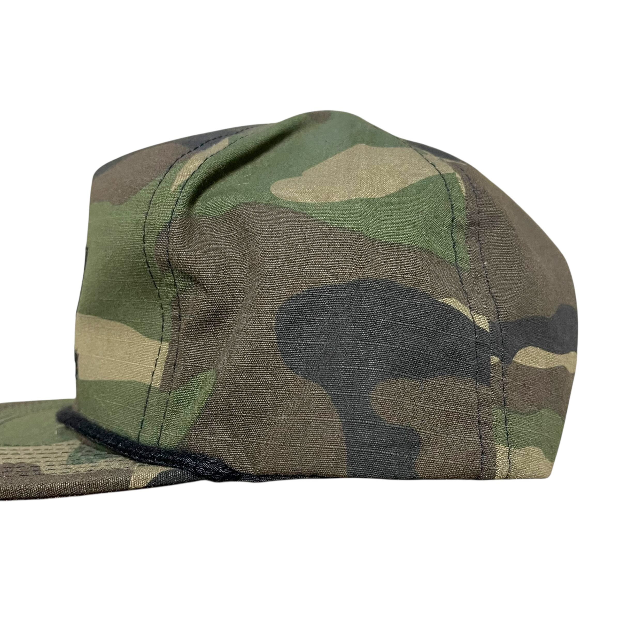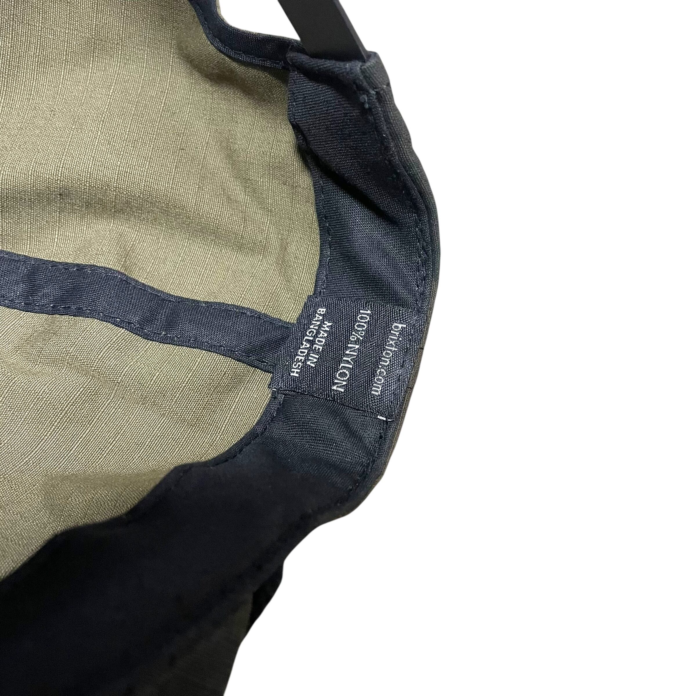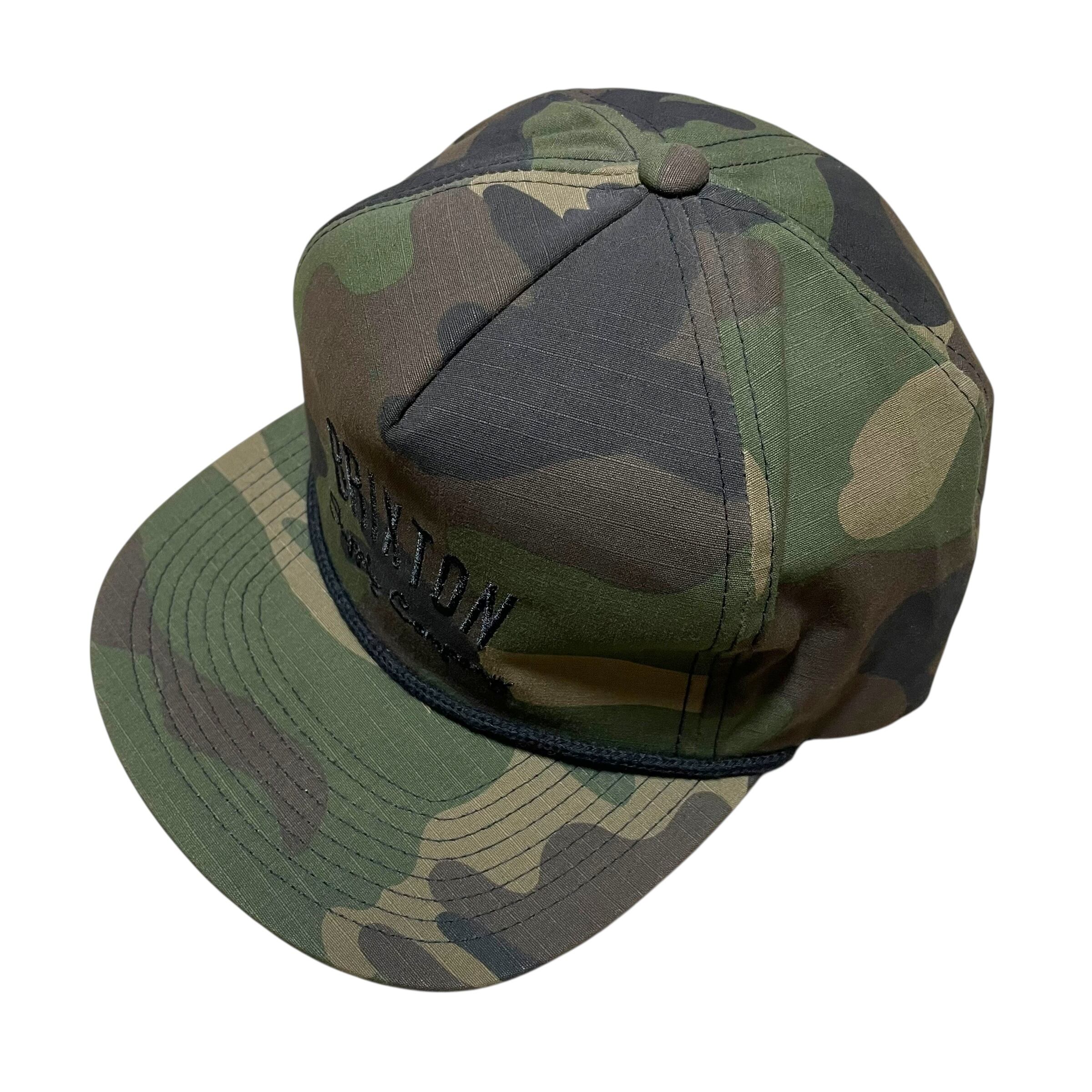 迷彩のボディにBRIXTONのネームデザインが刺繍されています。