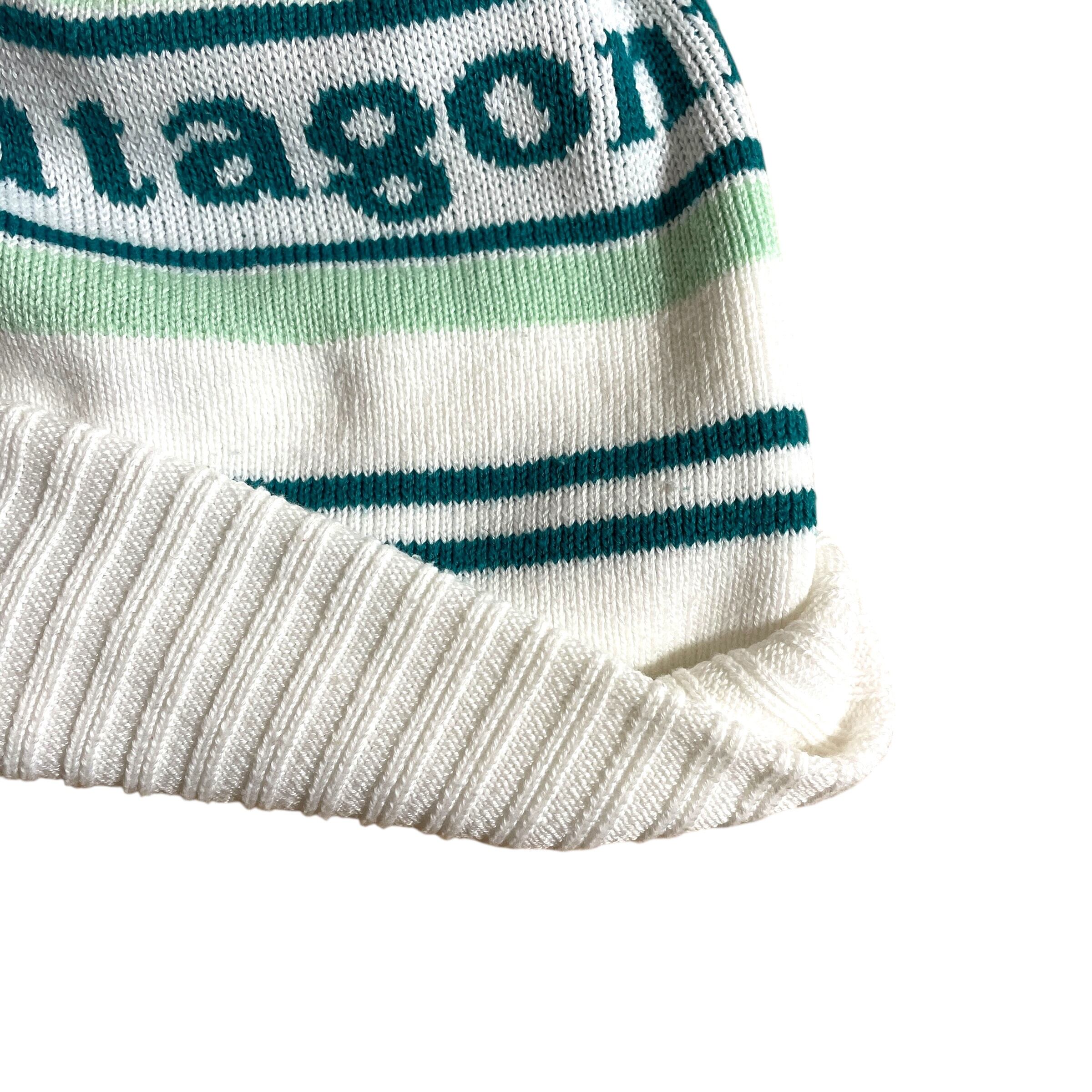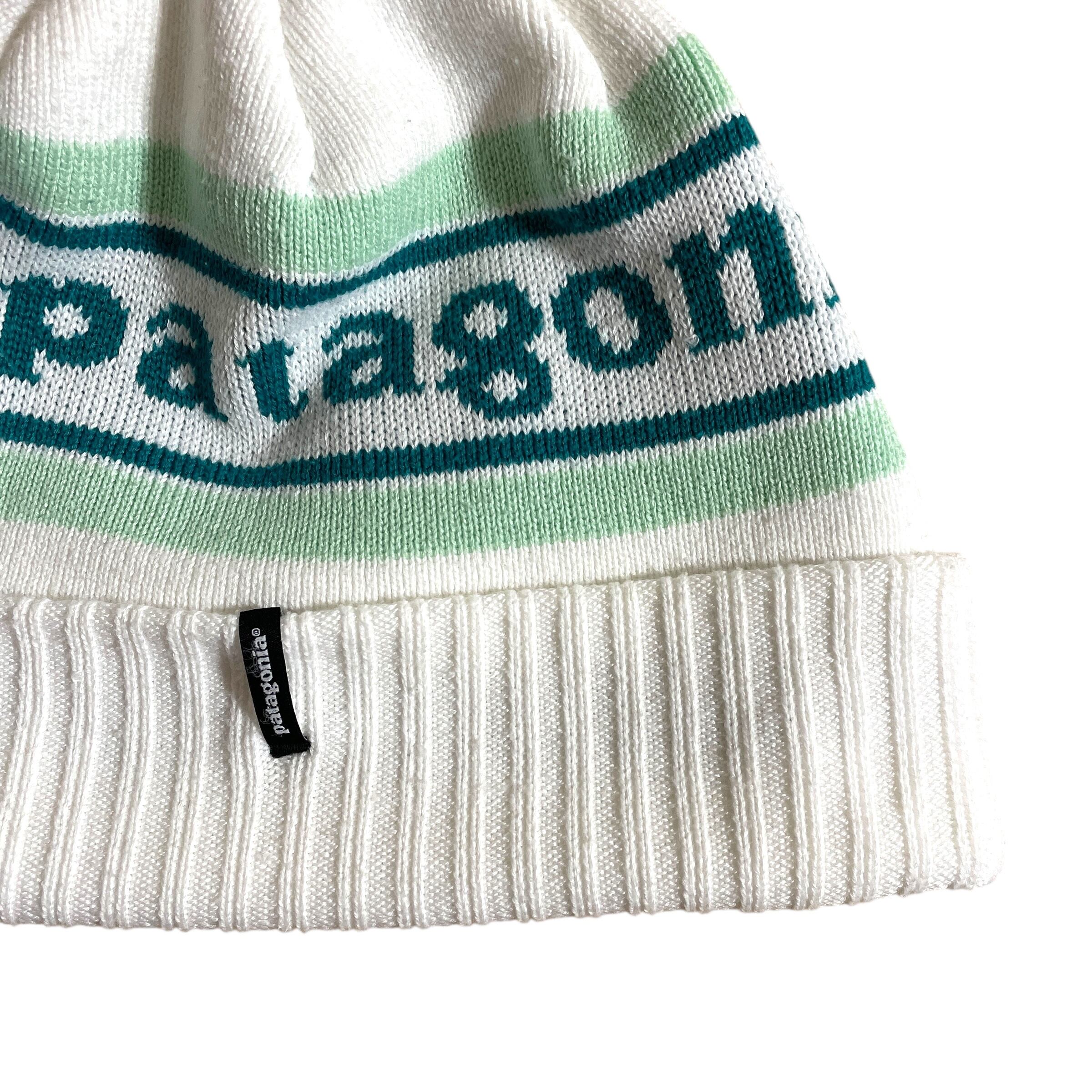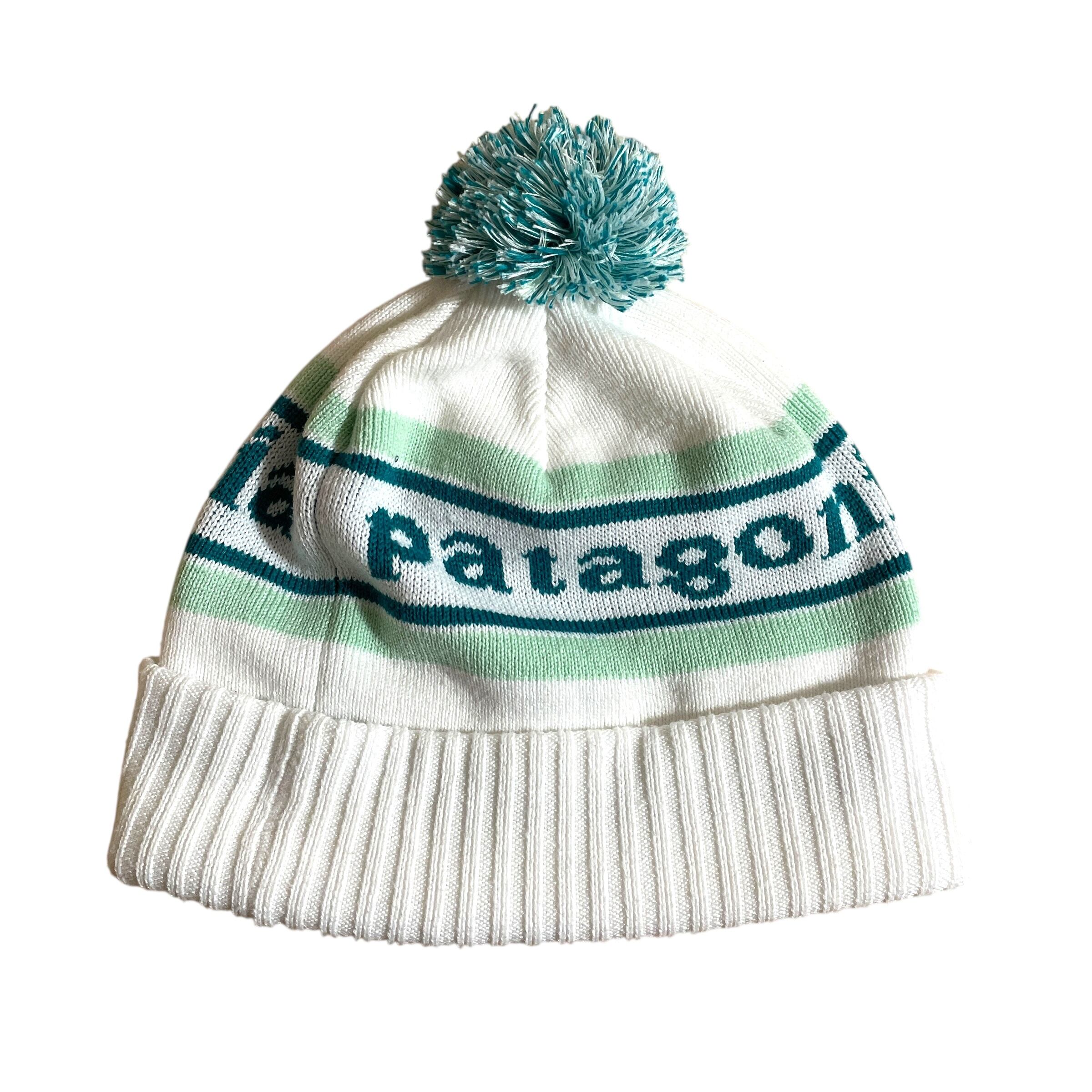 パタゴニアのネームデザインが入ったボンボン付きニット帽です。