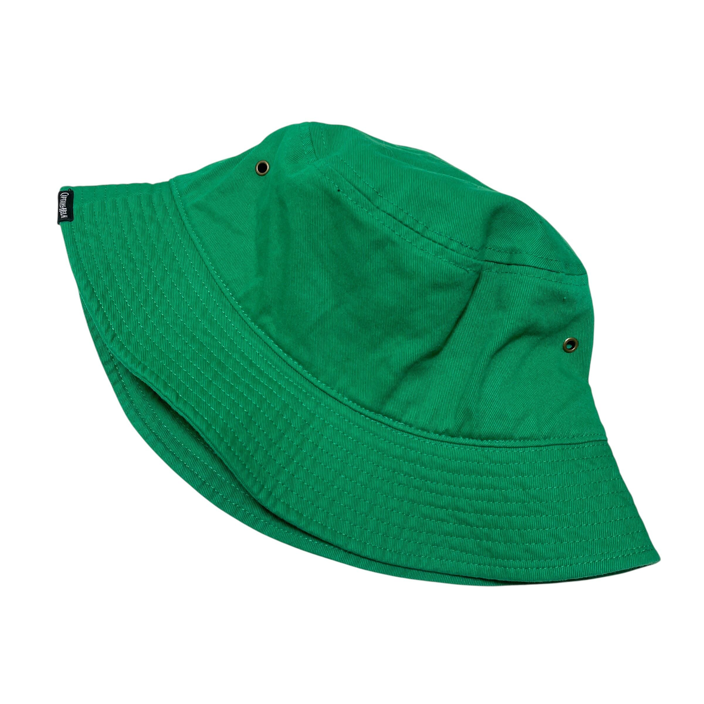 オールドイングリッシュのフォントでブランドネームがデザインされたバケットハットです。
